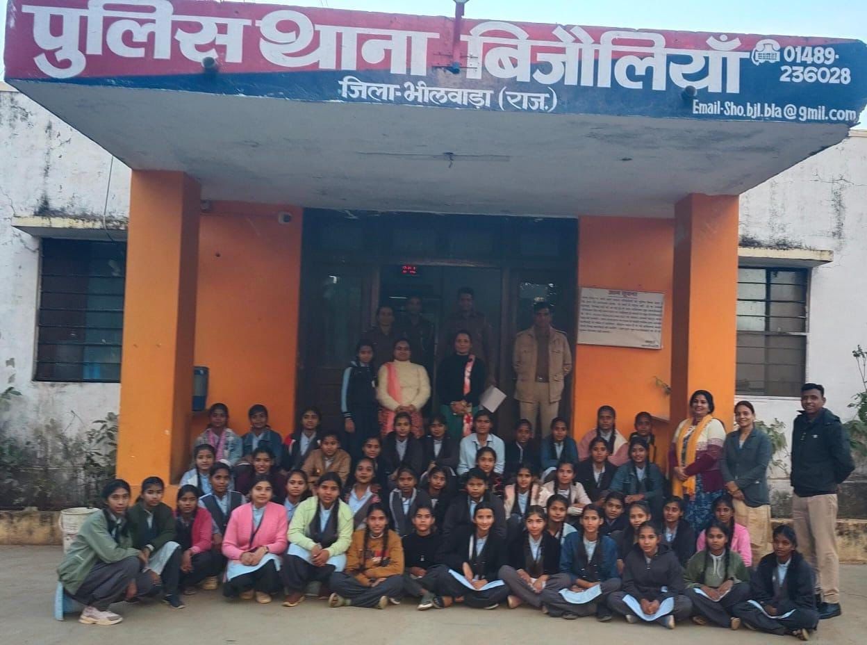 बिजोलिया पुलिस थाने में छात्राओं का शैक्षणिक भ्रमण, पुलिस की कार्यप्रणाली के बारे में ली जानकारी