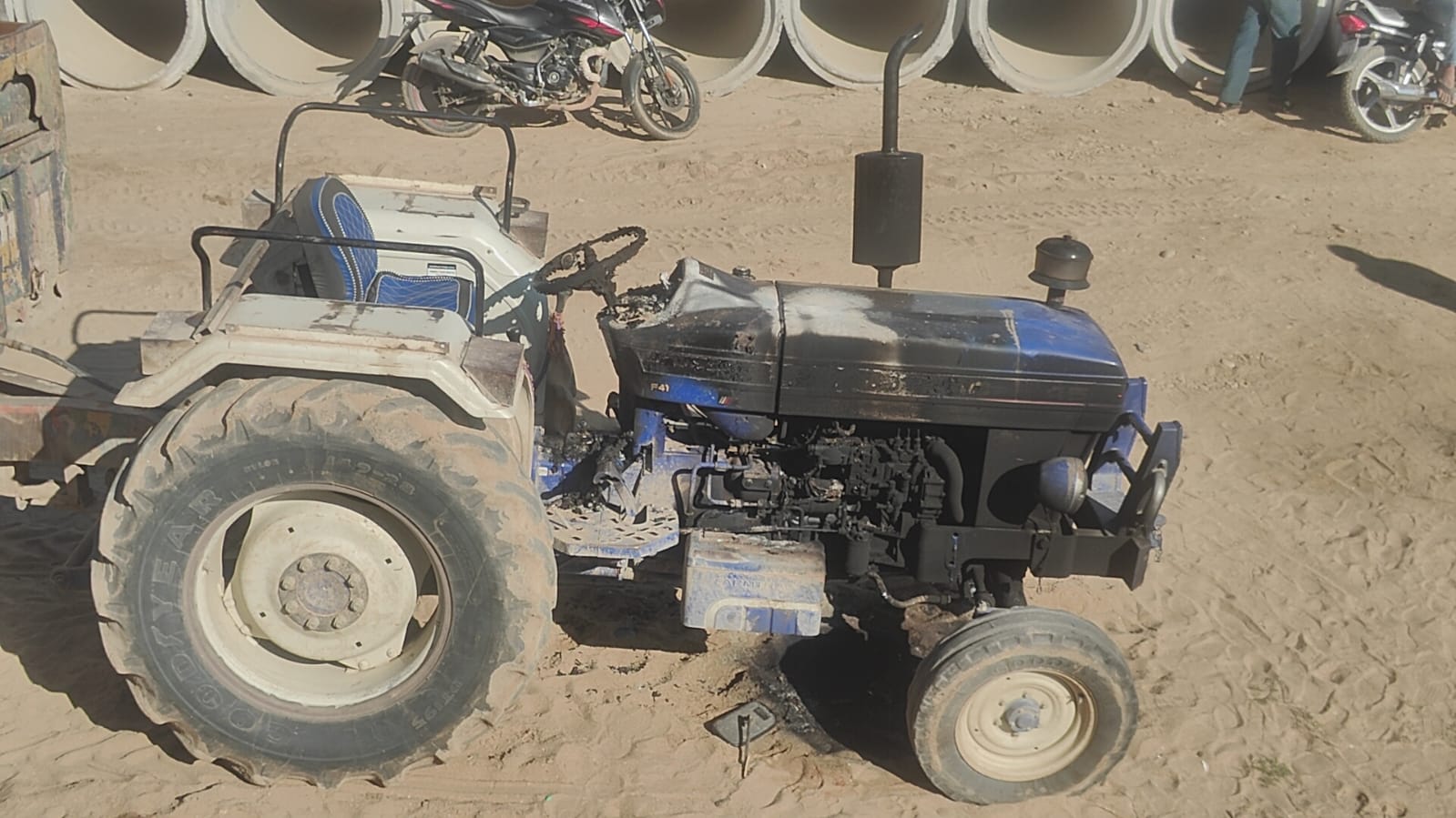 आज रविवार प्रातः करीब 7 बजे सुचना मिली की ट्रैक्टर में आग लग गई, जिसपर में मोके पर आकर देखा तो ट्रेक्टर में आग लगने से जला हुआ था, ट्रेक्टर में रात को अज्ञात कारण या शोर्ट सर्किट से भी आग लग सकती है व मेरे को चांदगढ चल रहे धरना वालो पर भी शंका है, आग से ट्रेक्टर आगे से इंजन व शोफ पुरी तरह से जल गया है, जिससे काफी नुकशान हुआ है,आग से ट्रैक्टर में करीब 2 लाख का नुकसान हुआ, वही इस घटना से लीज पर चलने वाले ट्रैक्टर मालिकों में भारी आक्रोश है । पुलिस ने मामला दर्ज कर जांच शुरू की और सीसीटीवी कैमरे खंगाल कर ट्रैक्टर में आग लगने के कारण पता लगाने का प्रयास कर रही है ।।