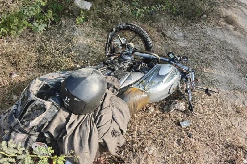 बस के नीचे दबे दो बाइक सवार युवक