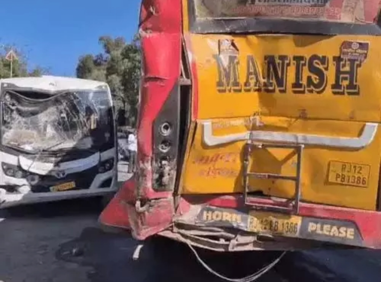 अजमेर । शास्त्री नगर चुंगी के पास दो प्राइवेट बसों के बीच जोरदार भिड़ंत हो गई। नरवर से अजमेर आ रही बस ने आगे चल रही दूसरी बस को पीछे से टक्कर मार दी। अचानक हुई टक्कर से बस में बैठे यात्रियों में अफरा-तफरी मच गई और कई यात्री घायल हो गए।