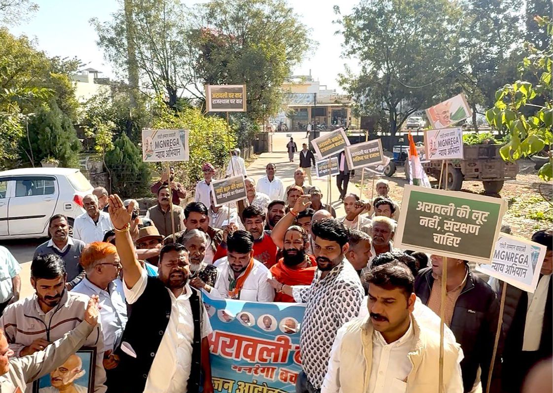 सभा को संबोधित करते हुए मांडलगढ़ विधानसभा प्रभारी मुरली गुर्जर ने कहा कि अरावली केवल पहाड़ नहीं, बल्कि राजस्थान की जीवनरेखा है। इसके संरक्षण से ही जल, पर्यावरण और जनजीवन का संतुलन बना रह सकता है। वहीं जिला परिषद सदस्य अंकित तिवारी ने केंद्र सरकार पर आरोप लगाते हुए कहा कि मनरेगा का नाम बदलना महात्मा गांधी के योगदान का तिरस्कार है, जिससे गरीब और श्रमिक वर्ग के हित प्रभावित हो रहे हैं।