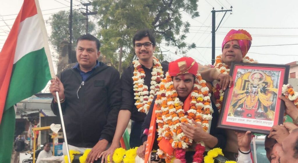 माउंट एवरेस्ट के दक्षिणी बेस कैंप पर तिरंगा फहराकर इतिहास रचने वाले शाहपुरा के युवा पर्वतारोही आकाश लोढ़ा का मंगलवार को नगर में ऐतिहासिक स्वागत किया गया। जैसे ही आकाश शाहपुरा पहुंचे, पूरा शहर उत्सव में बदल गया। विभिन्न सामाजिक संगठनों, राजनीतिक दलों, महिला मंडलों और युवाओं ने पुष्पमालाओं के साथ उनका अभिनंदन किया। खास बात यह रही कि स्वागत जुलूस में आकाश के साथ उनके माता-पिता भी खुली जीप में सवार रहे, जिनका भी नागरिकों ने सम्मानपूर्वक अभिवादन किया।