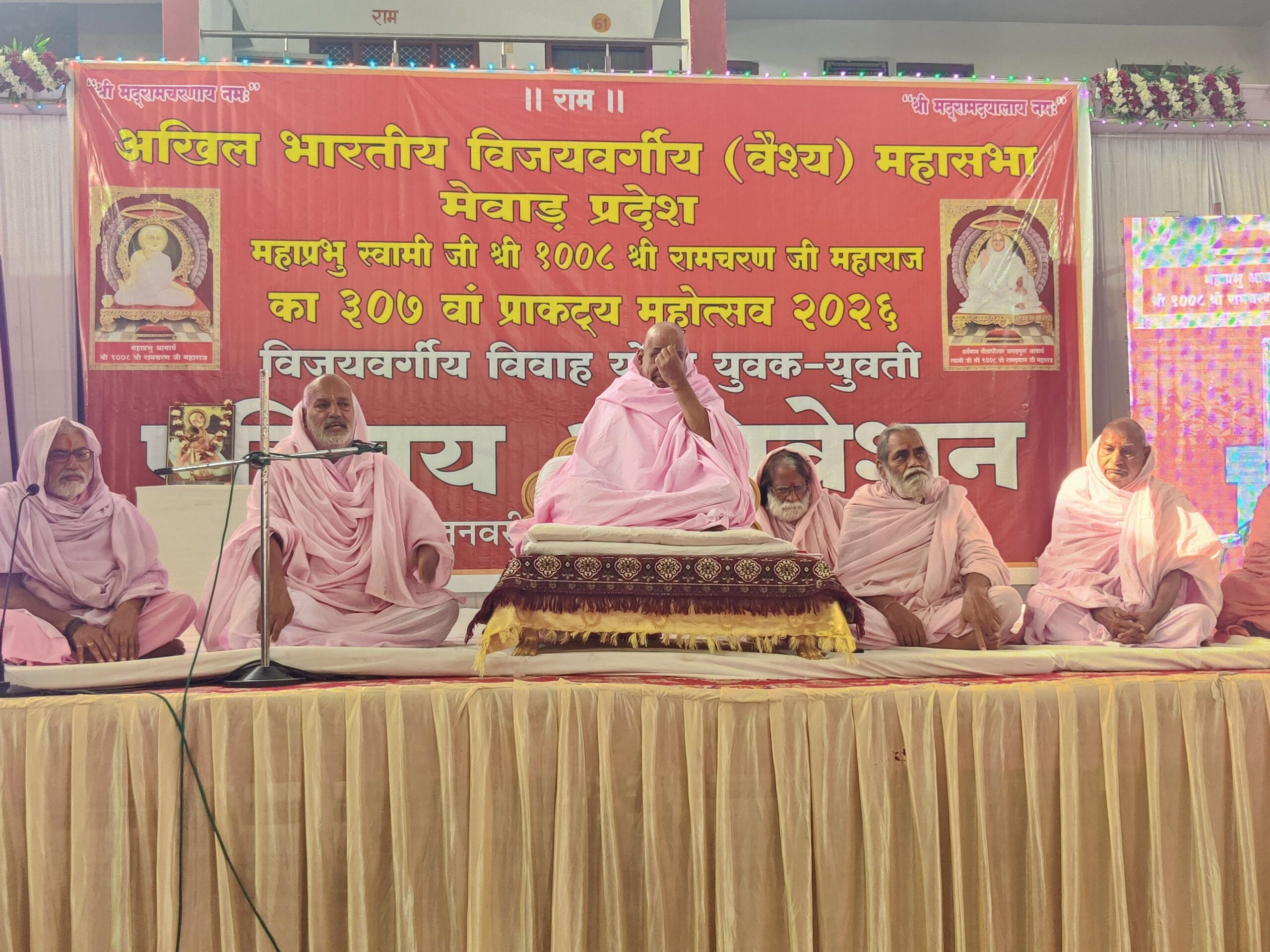 अखिल भारतीय विजयवर्गीय मेवाड़ महासभा के तत्वावधान में रामस्नेही संप्रदाय के संस्थापक आद्याचार्य महाप्रभु स्वामी रामचरण जी महाराज का 307वां प्राकट्य महोत्सव श्री रामनिवास धाम, शाहपुरा में 1 फरवरी रविवार 2026 को श्रद्धा, भक्ति और सामाजिक चेतना के साथ मनाया जाएगा। इससे पूर्व शनिवार को रामनिवास धाम में समाज के युवक-युवतियों का परिचय अधिवेशन आयोजित हुआ, जिसमें प्रदेशभर से समाजजनों ने उत्साहपूर्वक भाग लिया।