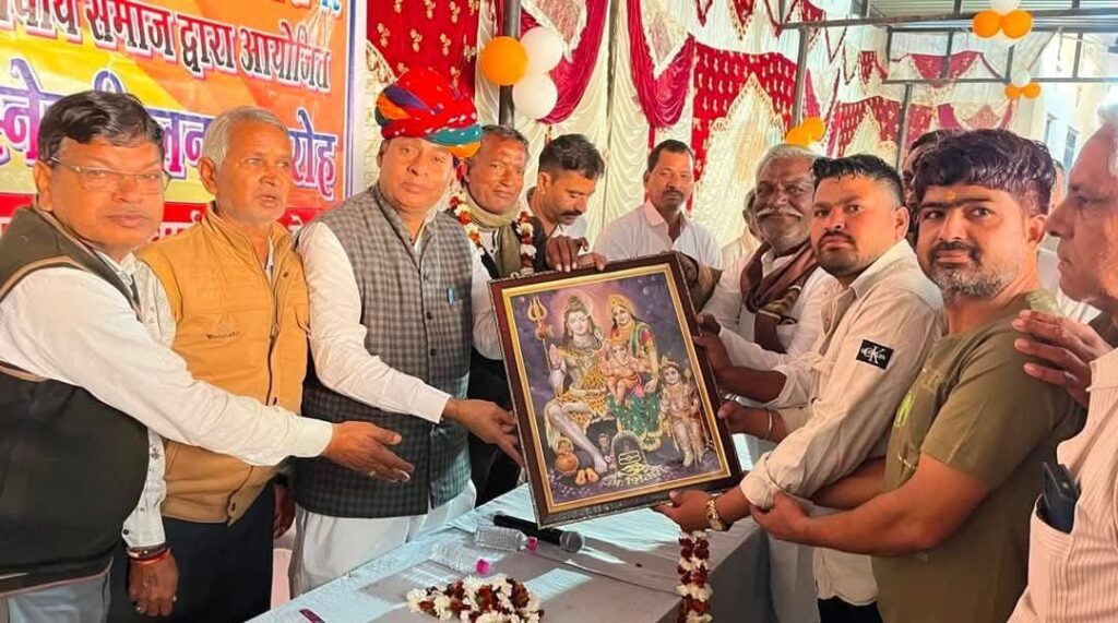 समारोह में मुख्य अतिथि भाजपा एसटी मोर्चा प्रदेशाध्यक्ष एवं विधायक गोपीचंद मीणा भी पहुंचे इस दौरान विधायक गोपीचंद मीणा सहित अन्य अतिथियों का भाजपा युवा मोर्चा मंडल उपाध्यक्ष राहुल आचार्य,पूर्व सरपंच गणेश लाल आचार्य सहित समाज बंधुओं ने माला साफा पहनाकर स्वागत सत्कार कर भगवान शिव पार्वती की तस्वीर भेट की समारोह को संबोधित करते हुए विधायक गोपीचंद मीणा ने कहा कि प्रधानमंत्री नरेंद्र मोदी और भजनलाल शर्मा जी की सरकार में प्रदेश पर में विकास कार्यों की जड़ी लगी हुई है