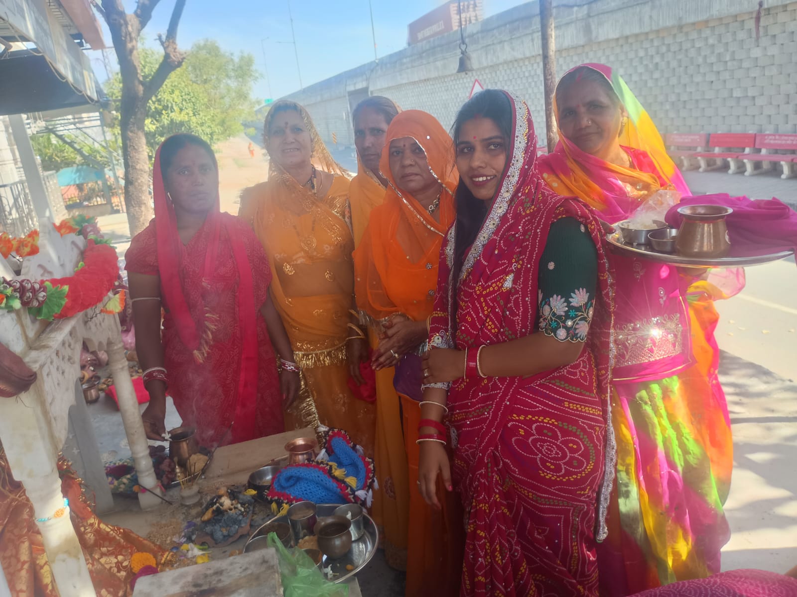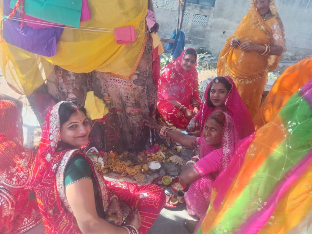 सुहागिन महिलाओं के साथ नव विवाहित महिलाएं भी सोलह श्रृंगार कर लाल-पीली साड़ियों में सजी महिलाओं ने समूह में एकत्रित होकर कच्चा सूत हाथ में लिया और घर की ‘दशा’ (आर्थिक और मानसिक स्थिति) सुधारने का संकल्प लिया।