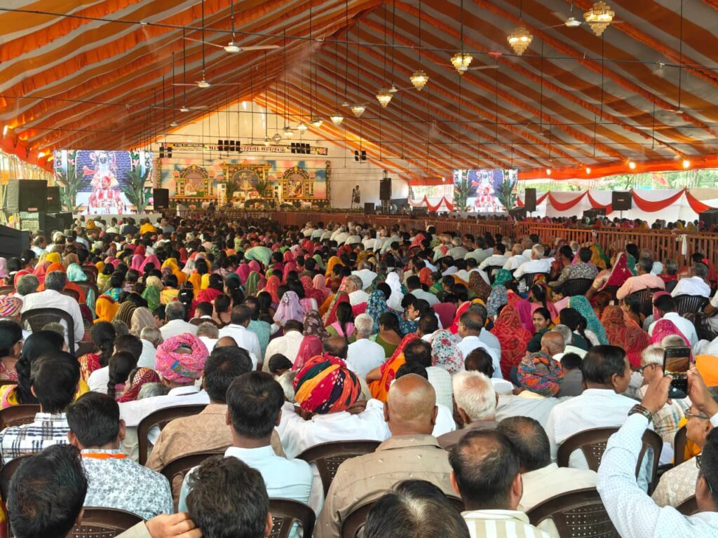 भीलवाड़ा 29 मार्च। परम पूज्य माधव गो विज्ञान अनुसंधान संस्थान एवं श्री सांवरिया सेठ मंदिर ट्रस्ट, नौगांवा के संयुक्त तत्वावधान में आयोजित ‘भागवत समरसता महोत्सव’ के तीसरे दिन रविवार को श्रद्धालुओं की भारी भीड़ उमड़ी। श्रद्धालुओं की हजारों की तादाद में संख्या को देखते हुए पंडाल खचाखच भर गया।