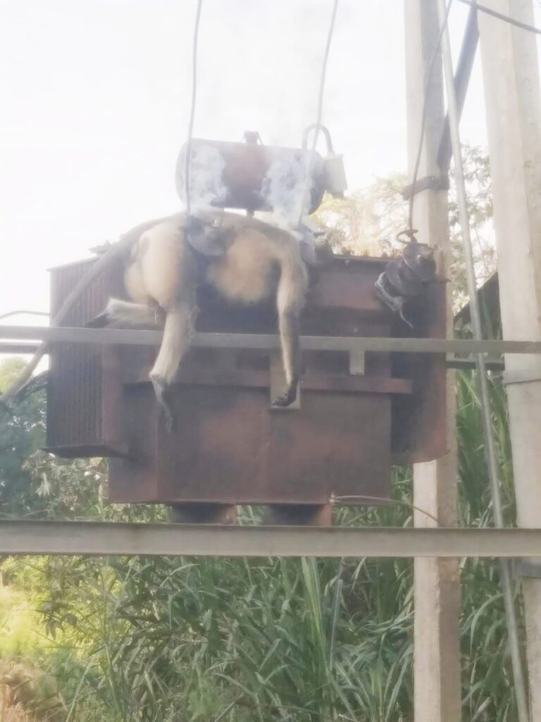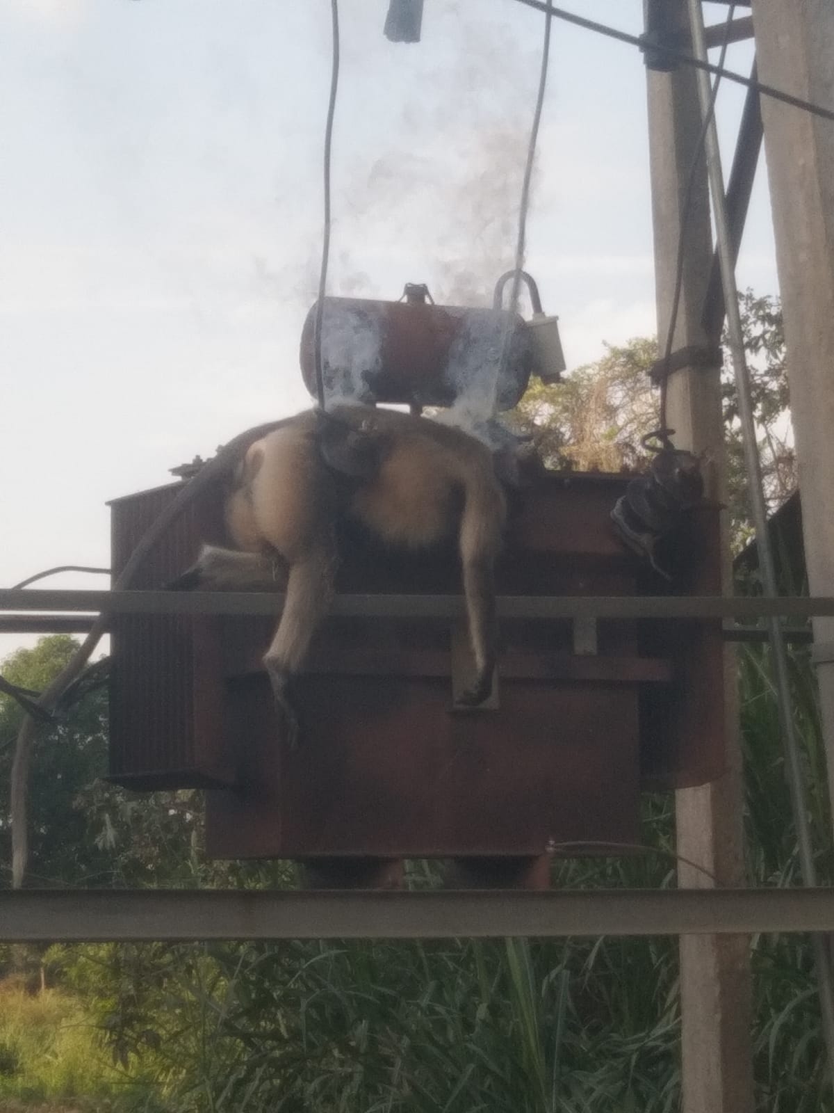 आकोला बस स्टैंड पर बिजली के ट्रांसफार्मर पर करंट लग जाने से एक बंदर की मौत हो गई। जानकारी के अनुसार आकोला बस स्टैंड पर लगे बिजली के ट्रांसफार्मर पर बुधवार को सुबह एक बंदर चढ़ गया जो करंट की चपेट में आ गया जिससे उसकी मौके पर ही मौत हो गई वही कस्बे में बिजली सप्लाई बाधित हो गई। वही ग्रामीणों को जानकारी होने पर बिजली विभाग के कर्मचारियों को सूचना देकर बिजली बंद करवाकर बंदर को उतारा ।