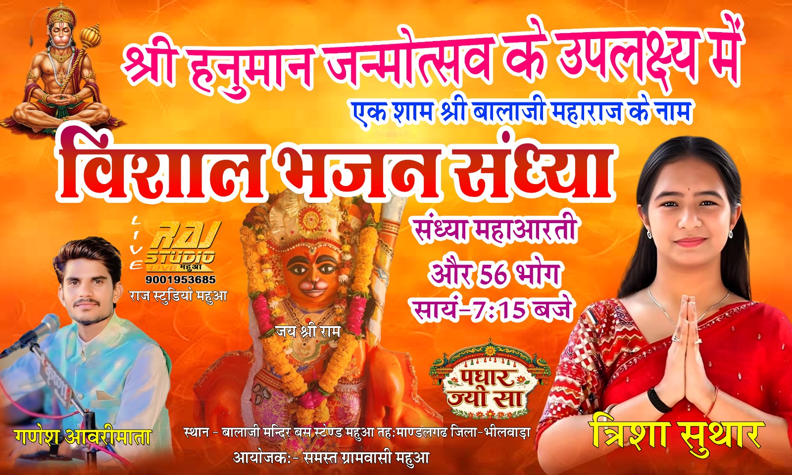महुआ में हनुमान जन्मोत्सव पर,एक शाम बाला जी महाराज के नाम,विशाल जुलूस कल।
