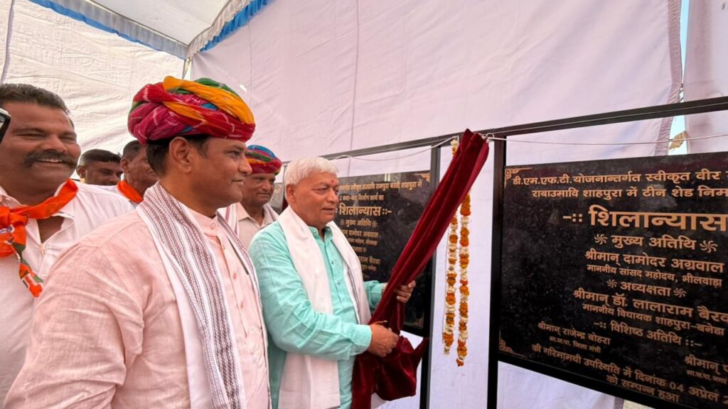 शाहपुरा क्षेत्र में विकास की रफ्तार को नई उड़ान देते हुए शनिवार को शाहपुरा को 18 करोड़ रुपये की बड़ी सौगात मिली। भीलवाड़ा सांसद दामोदर अग्रवाल और शाहपुरा विधायक डॉ. लालाराम बैरवा ने डाक बंगले में आयोजित समारोह में 9 महत्वपूर्ण विकास कार्यों का भूमि पूजन एवं शिलान्यास किया। कार्यक्रम में जनप्रतिनिधियों, भाजपा कार्यकर्ताओं और गणमान्य नागरिकों की उपस्थिति ने आयोजन को उत्साहपूर्ण बना दिया।