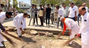 जहाजपुर,भारतीय जनता पार्टी के स्थापना दिवस के उपलक्ष में चल रहे गाँव/बस्ती चलो अभियान के तहत शनिवार को भीलवाड़ा सांसद दामोदर अग्रवाल एवं जहाजपुर विधायक गोपीचंद मीणा पंडेर के राजकीय चिकित्सालय परिसर में स्वच्छता अभियान में सहभागिता की। इस दौरान विधायक मीणा ने भीलवाड़ा सांसद दामोदर अग्रवाल एवं कार्यकर्ताओं के साथ अस्पताल परिसर मे साफ-सफाई कर स्वच्छता का संदेश दिया।