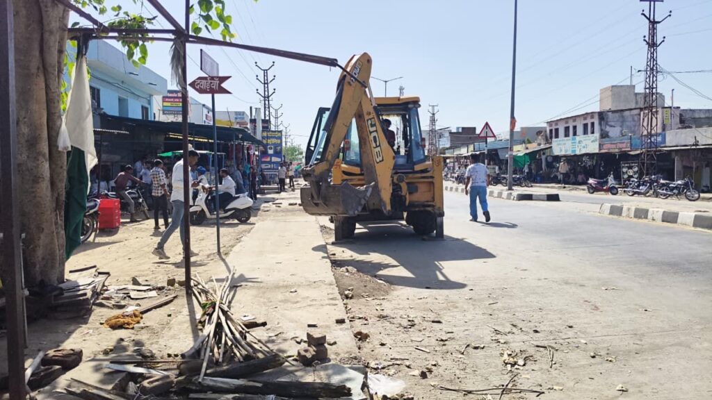 आज सोमवार को राष्ट्रीय राजमार्ग पर सवाईपुर चौराहे पर नाला व सड़क के बीच से 15 मीटर के दायरे में हो रहे अतिक्रमण हटाकर होर्डिंग व बोर्डो आदि को हटाया गया, इस कार्रवाई के बाद दुकानदार दुकानों के बाहर रखें सामानों व होर्डिंग को सिमेटने लगे । वही ढ़ेलाणा चौराहे पर सड़क किनारे लगे बोर्ड व होर्डिंग को हटाने की कार्रवाई की, जो आगे भी जारी रहेगी ।।