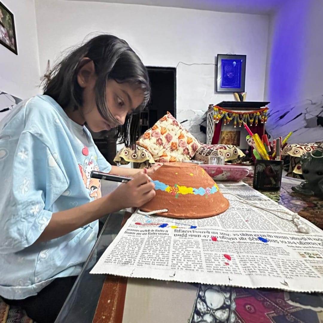 प्रतिभागी परिण्डों को अपनी कल्पना और रंगों से सजाकर उन्हें आकर्षक कलाकृतियों में बदल रहे हैं।