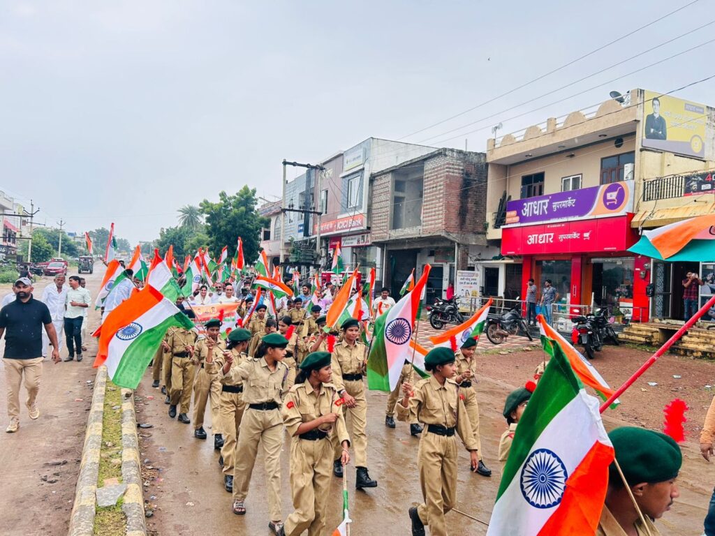 रिमझिम बारिश में देशभक्ति का जज्बा, बिजोलिया में एक किलोमीटर लंबी तिरंगा यात्रा का भव्य आयोजन