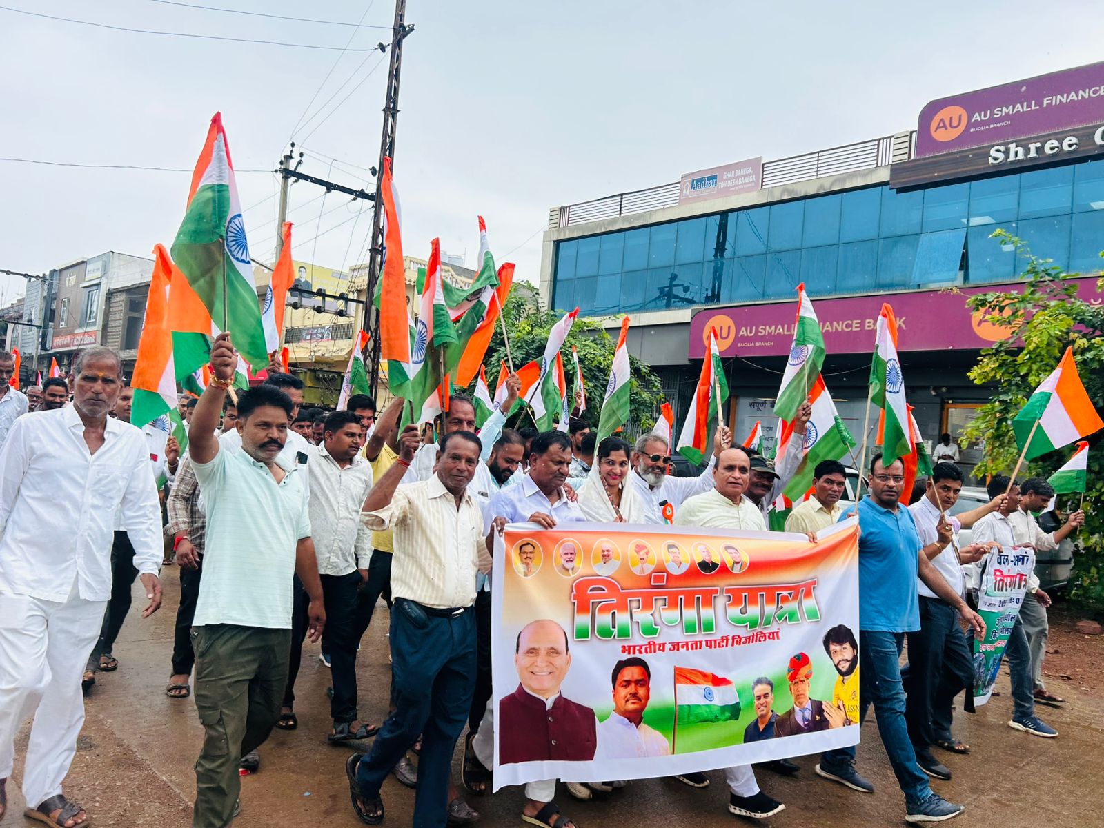 रिमझिम बारिश में देशभक्ति का जज्बा, बिजोलिया में एक किलोमीटर लंबी तिरंगा यात्रा का भव्य आयोजन