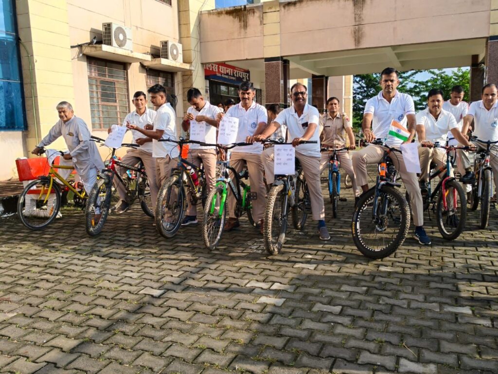 भीलवाड़ा। फिट इंडिया मिशन के तहत रविवार को भीलवाड़ा पुलिस ने “फिटनेस की डोज – आधा घंटा रोज” नारे के साथ साइकिल रैली का आयोजन किया। जिला पुलिस अधीक्षक धर्मेन्द्र सिंह के नेतृत्व में सुबह 7.15 बजे पुलिस नियंत्रण कक्ष से शुरू हुई रैली शहर के मुख्य मार्गों से होकर पुनः कंट्रोल रूम पर पहुंची। रैली में लगभग 250 से 300 प्रतिभागियों ने हिस्सा लिया, जिनमें जनप्रतिनिधि, उद्योगपति, समाजसेवी, साइकिल क्लब सदस्य, एनजीओ, विद्यार्थी और बड़ी संख्या में बच्चे शामिल हुए।