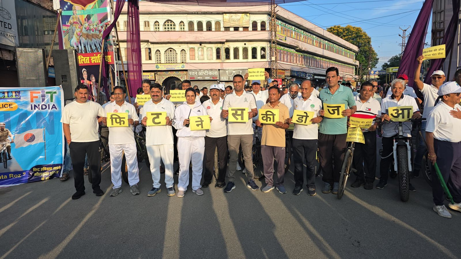 भीलवाड़ा। फिट इंडिया मिशन के तहत रविवार को भीलवाड़ा पुलिस ने “फिटनेस की डोज – आधा घंटा रोज” नारे के साथ साइकिल रैली का आयोजन किया। जिला पुलिस अधीक्षक धर्मेन्द्र सिंह के नेतृत्व में सुबह 7.15 बजे पुलिस नियंत्रण कक्ष से शुरू हुई रैली शहर के मुख्य मार्गों से होकर पुनः कंट्रोल रूम पर पहुंची। रैली में लगभग 250 से 300 प्रतिभागियों ने हिस्सा लिया, जिनमें जनप्रतिनिधि, उद्योगपति, समाजसेवी, साइकिल क्लब सदस्य, एनजीओ, विद्यार्थी और बड़ी संख्या में बच्चे शामिल हुए।