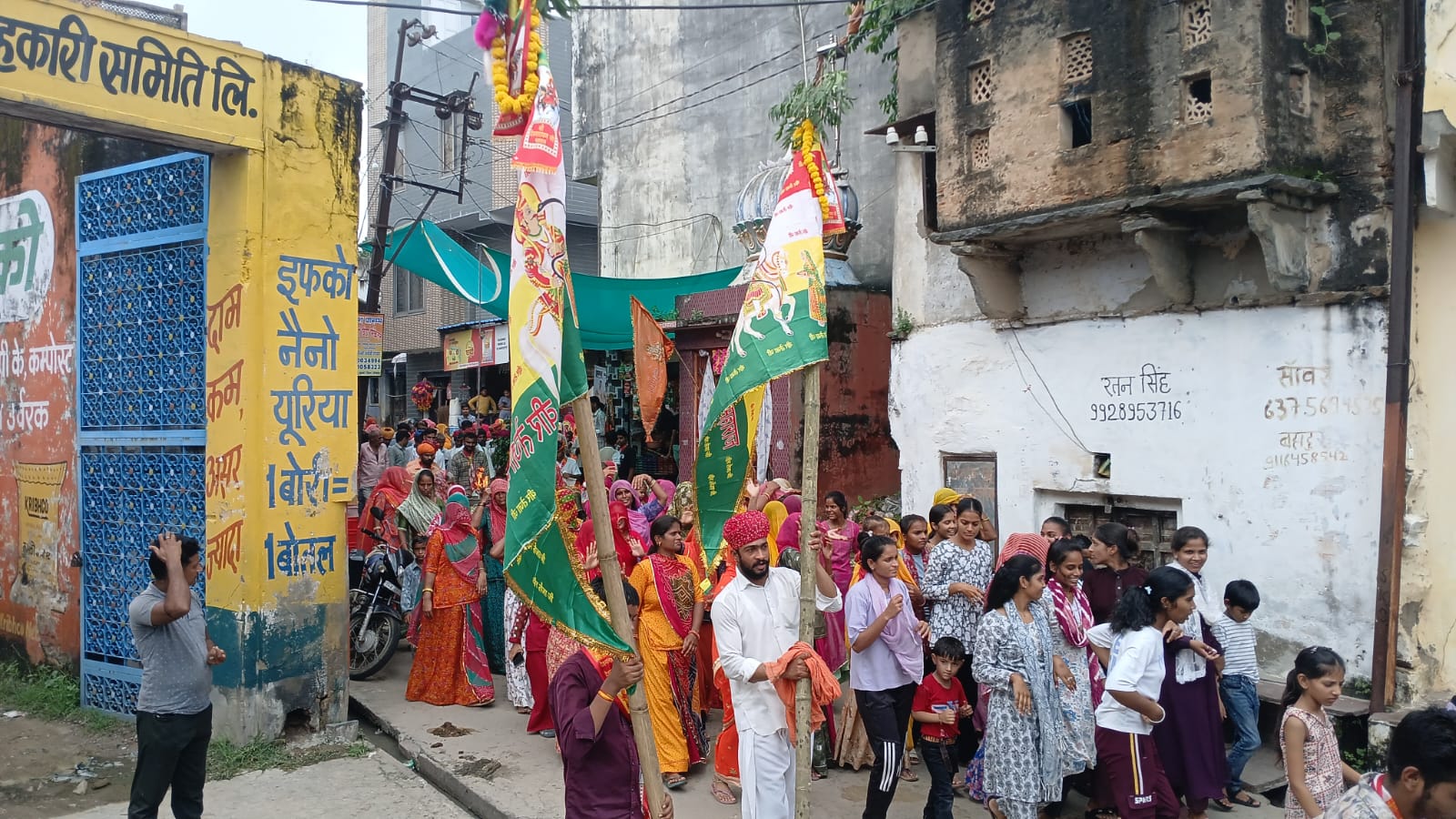 शोभा यात्रा गढ़ की गाटी तेजाजी चोक से शुरू होकर बाजार सहकारी समिति रेगर मोहल्ला मे रामदेव मंदिर जेन मंदिर बड़ा मंदिर बस स्टेंड सहित प्रमुख मार्गों से होते हुए फुटवाड स्थित तेजाजी स्थानक पहुंची। शोभा यात्रा में युवतियां डीजे की धुनों पर नृत्य करते हुए चल रही थे। शोभायात्रा का मार्ग में जगह-जगह स्वागत किया गया। इस मौके पर बड़ी संख्या सर्व में समाज के लोग मौजूद रहे।