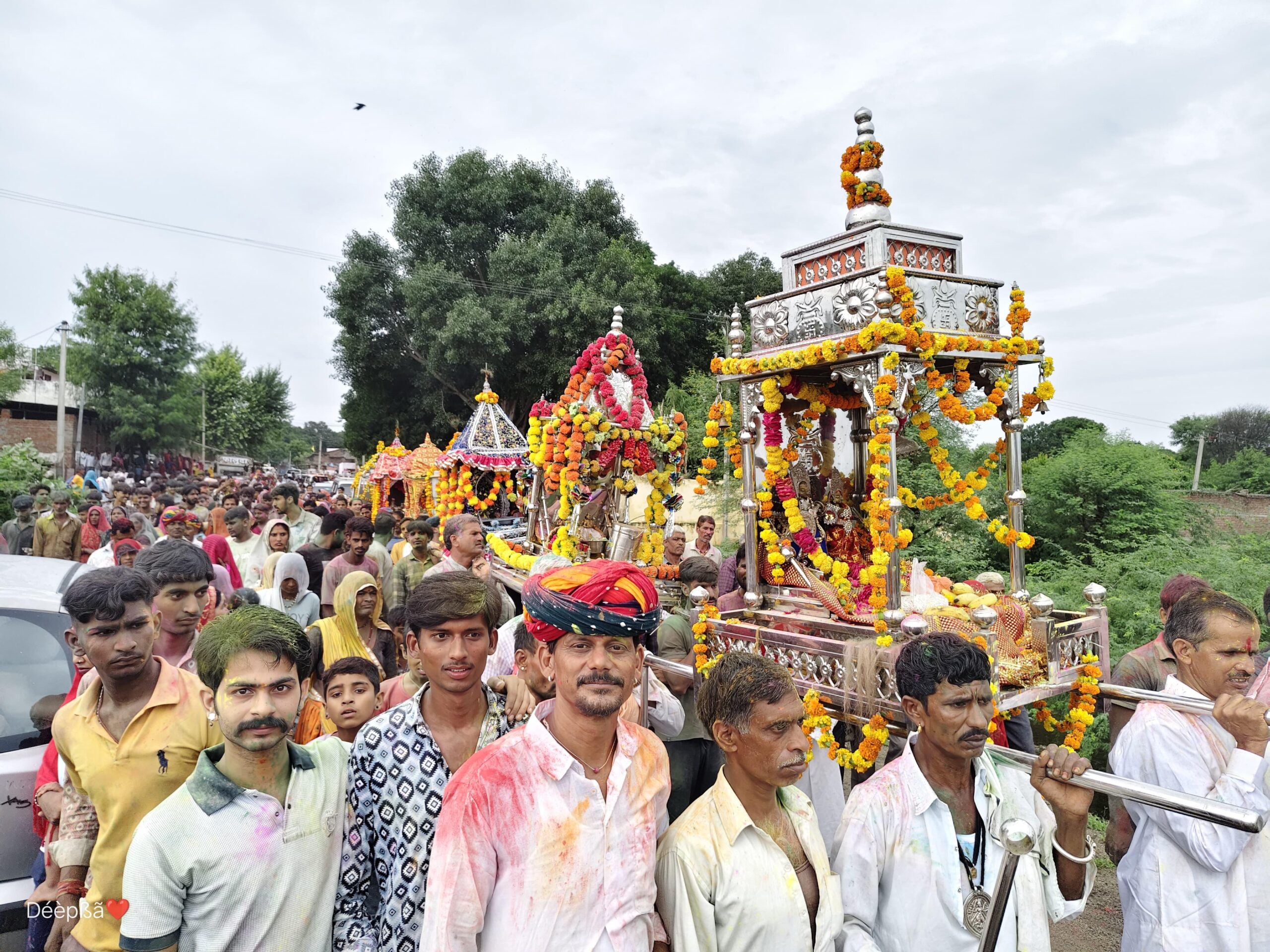 राम रेवड़ियों का जलझूलन किया , आकोला कस्बे में निकली शोभायात्रा, बनास नदी पर हुई महाआरती