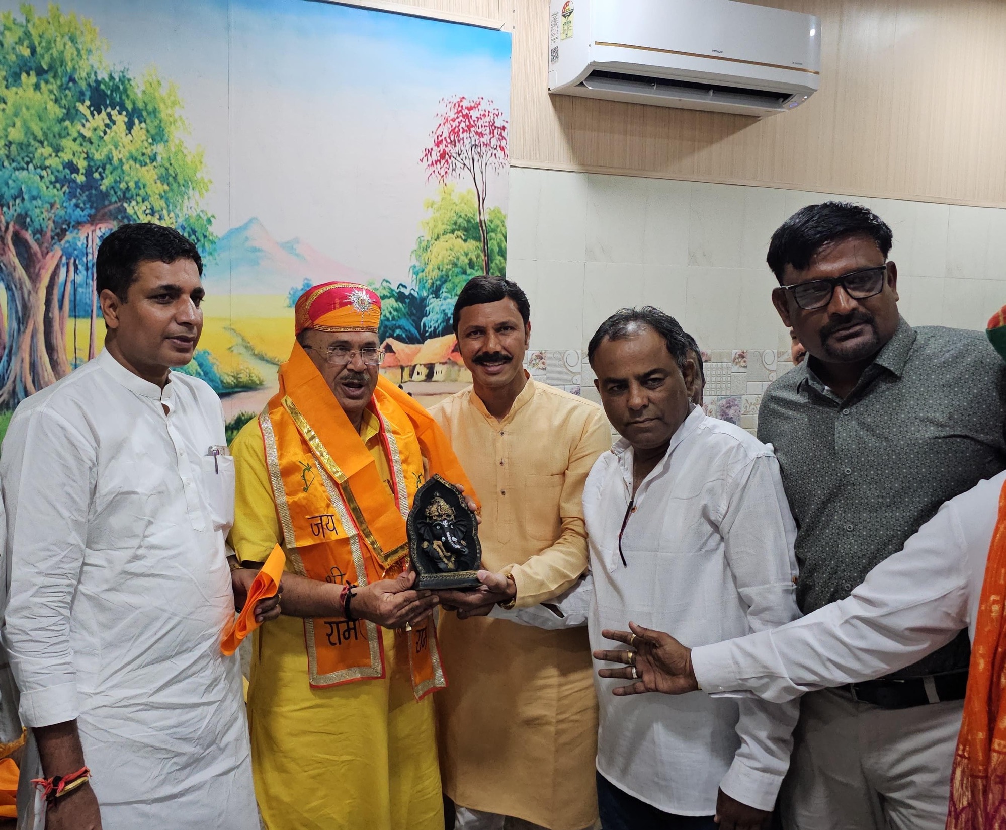राजस्थान विधानसभा अध्यक्ष वासुदेव देवनानी के भीलवाड़ा आगमन पर शनिवार को राजस्थान जन मंच की ओर से सर्किट हाउस में भव्य स्वागत एवं अभिनंदन किया गया। इस अवसर पर उन्हें भगवान श्रीगणेश की प्रतिमा भेंट की गई तथा प्रभु श्रीराम का दुपट्टा पहनाकर सम्मानित किया गया।