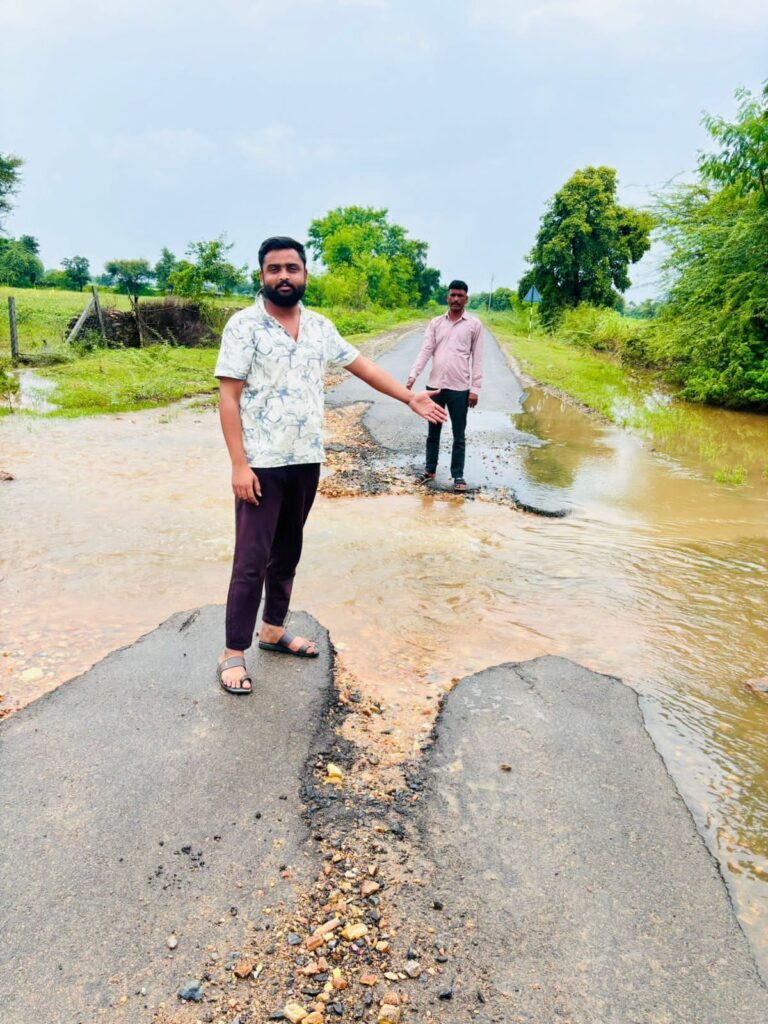 90 लाख की सड़क 6 माह भी नहीं टिकी, पाइप नहीं लगाने से बारिश में बह गई ,पड़ी गहरी खाई,,,