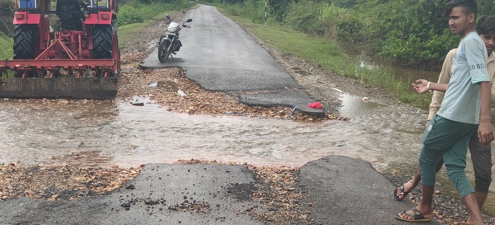 क्षेत्र के भगूनगर से पदमपुरा मार्ग पर बनी नई सड़क पहली ही बारिश में बह गई। खेतों से निकलने वाले पानी की निकासी के लिए पाइप डाले बिना ही सड़क बना दी गई, जिसका नतीजा यह हुआ कि तेज बहाव में पूरी सड़क टूटकर बह गई।