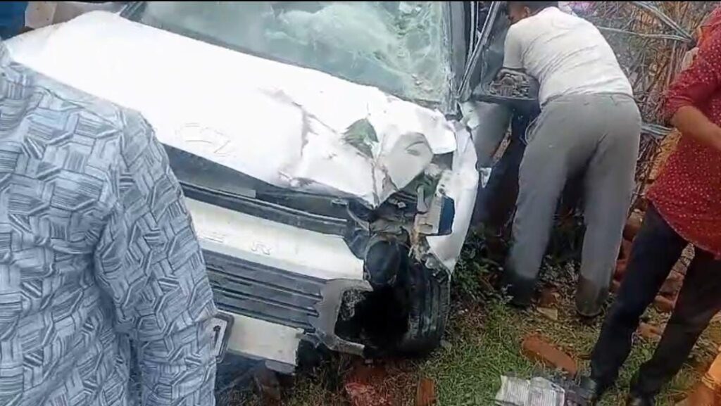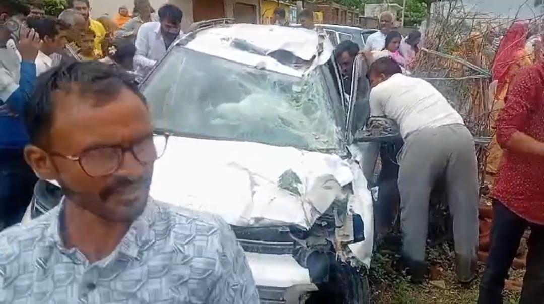 गुरला शिव नगर में अनियंत्रित होकर कार खंबे व पेड़ से टकराईं  बाइक को लिया चपेट में कोई जनहानि नहीं