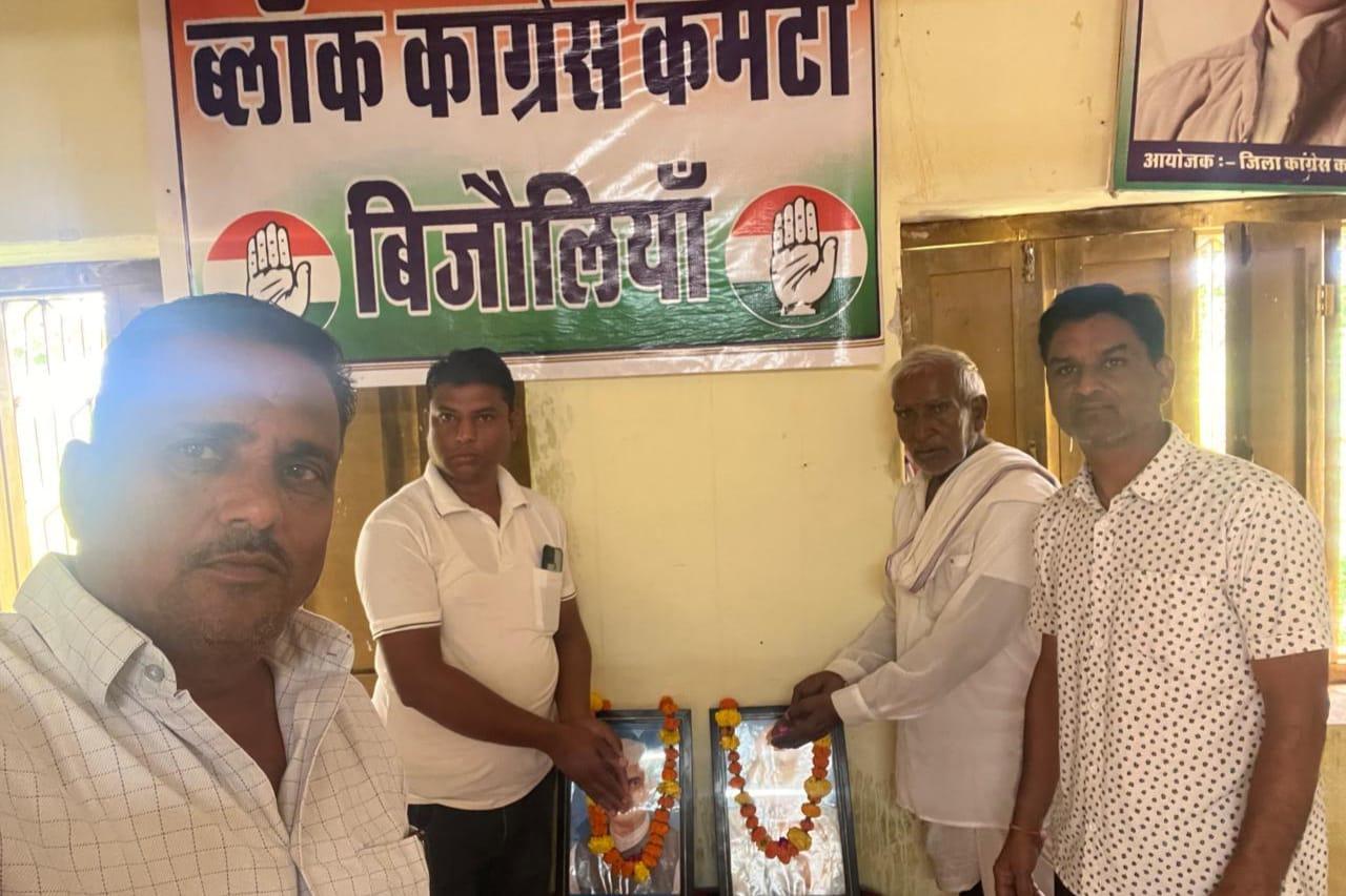 बिजौलिया। राष्ट्रपिता महात्मा गांधी और पूर्व प्रधानमंत्री लाल बहादुर शास्त्री की जयंती पर गुरुवार को ब्लॉक कांग्रेस कार्यालय में श्रद्धांजलि कार्यक्रम आयोजित किया गया। इस अवसर पर कांग्रेसजनों ने दोनों महान नेताओं के चित्र पर पुष्पांजलि अर्पित कर श्रद्धा-सुमन अर्पित किए और उनके बताए मार्ग पर चलने का संकल्प लिया।