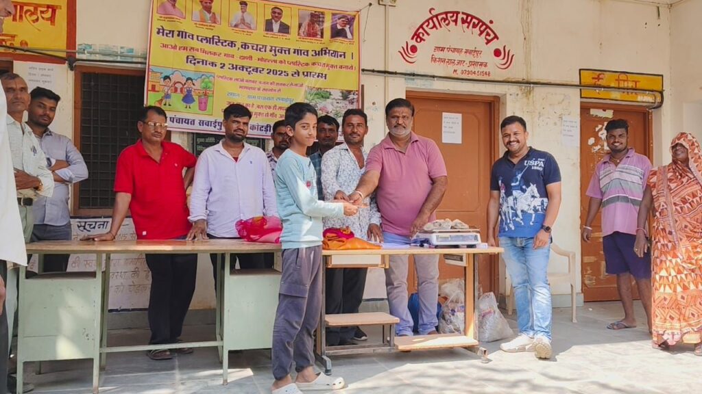 सवाईपुर ( सांवर वैष्णव ):- सवाईपुर ग्राम पंचायत मुख्यालय पर आज मेरा गांव प्लास्टिक, कचरा मुक्त गांव अभियान की शुरुआत हुई, जिसमें गांव ढाणी मोहल्ला को प्लास्टिक कचरा मुक्त बनाये । प्रशासक किशनलाल जाट ने ग्राम पंचायत को कचरा मुक्त बनाने के लिए प्लास्टिक लाओ और उसके बराबर शक्कर ले जाओ अभियान की शुरुआत की ।