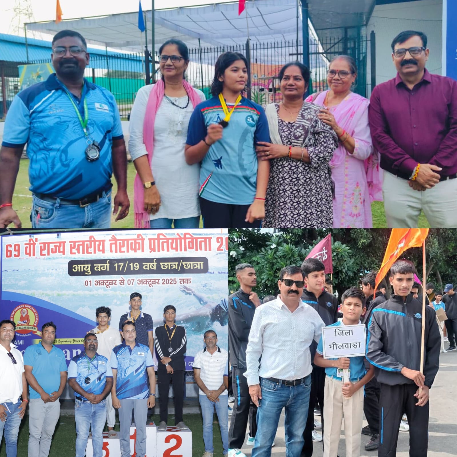 प्रतियोगिता में भीलवाड़ा की टीम ने 3 रजत और 4 कांस्य पदक जीते थे। 400 मीटर फ्री स्टाइल में पूर्वाक्ष शर्मा और माया खटीक ने रजत पदक अपने नाम किया। 400 मीटर प्ड में आदित्य उपाध्याय ने रजत और रामघनी कहार ने कांस्य पदक जीता। इसके अलावा, 4×100 मीटर मेडले रिले में भीलवाड़ा की टीम ने कांस्य पदक प्राप्त किया। इस टीम में बालक श्रेणी में रणवीर मीणा, ताहिर, आदित्य और त्रिलोक खटीक, तथा बालिका श्रेणी में भूमि, माया खटीक और प्रीति वैष्णव शामिल थीं।