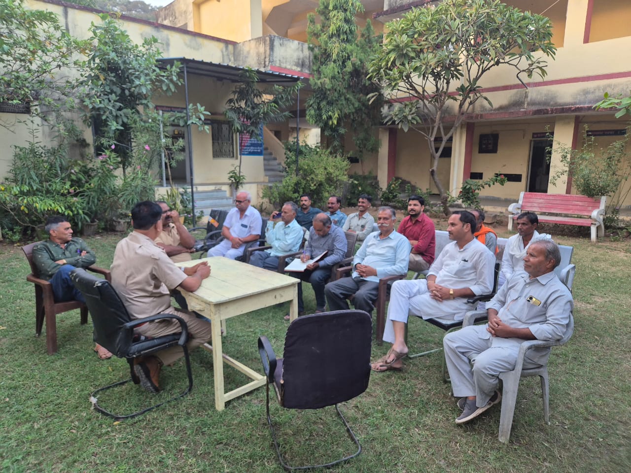 बैठक में थाना प्रभारी बालकिशन शर्मा एएसआई श्रवण सिंह मीणा इंद्राज मीणा काछोला प्रशासक रामपाल बलाई ठाकुर वंश प्रदीप सिंह सोलंकी भाजपा नेता व विधायक प्रतिनिधि संदीप सोनी संपत सिंह सोलंकी भगवान मंत्री सरपंच प्रतिनिधि सत्यनारायण बलाई मोहित गगरानी आदि ग्रामीण मौजूद रहे