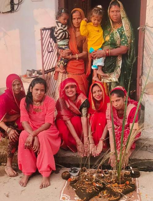 इस वर्ष दीपावली के सुबह भी महिलाओं ने गोवर्धन पूजा की शिव मोहल्लों ओर घरों के आगे महिलाओं ने गाय के गोबर से गोवर्धन पर्वत की प्रतिकुति बनाकर पूजा अर्चना की