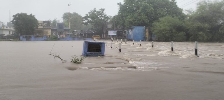 बिजौलिया में मूसलाधार बारिश से जनजीवन अस्त-व्यस्त, नदियां उफान पर — जलभराव से संपर्क मार्ग बंद