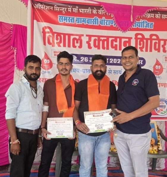 शिविर संयोजक कैलाशचंद्र गाड़िया लौहार ने बताया कि लगातार दूसरे वर्ष आयोजित इस शिविर में युवाओं ने देशभक्ति और सेवा भाव के साथ बढ़-चढ़कर रक्तदान किया। रक्तदाता टीम बोराणा के मनीष रेगर, हिमांशु रेगर, दिव्यांश बोलीवाल, श्रीयांश बोलीवाल और अर्पित टेलर ने शिविर को सफल बनाने में सक्रिय भूमिका निभाई।