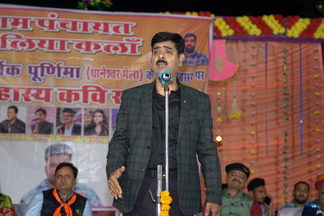 कार्तिक मेले के पावन अवसर पर फूलिया कलां ग्राम पंचायत के तत्वावधान में धानेष्वर धाम में पहली बार आयोजित अखिल भारतीय हास्य कवि सम्मेलन में देशभर से आए कवियों ने अपनी प्रस्तुति से श्रोताओं को देर रात तक बांधे रखा। आयोजन ने न केवल हास्य का समंदर बहाया बल्कि श्रृंगार, ओज और देशभक्ति की धारा भी प्रवाहित की। कवियों की प्रभावशाली वाणी और मनोरंजक अंदाज ने पावन धाम को काव्य रस में सराबोर कर दिया।