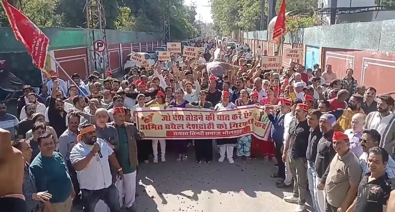भीलवाड़ा के सातों झूलेलाल मंदिर की कार्यकारिणी, सिन्धी सेंट्रल पंचायत, सिन्धु संस्कार सेवा समिति और सकल सिन्धी समाज ने मिलकर सूचना केंद्र से झूलेलाल भजनों और भारत माता की जय के नारों के साथ कलेक्ट्री तक रैली निकाली। आक्रोशित समाज ने अमित बघेल का पुतला दहन किया।