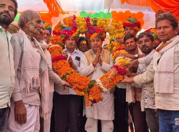 एवं प्रधान प्रतिनिधि शर्मा का माला साफा बंधवाकर ग्रमजोशी से स्वागत किया।वहीं हरि बोल प्रभात फेरी कार्यक्रम में ग्रामीणों द्वारा भजन कीर्तन सहित हरि बोल के जयकारे गुजते रहे।विधायक मीणा एवं प्रधान प्रतिनिधि शर्मा ने हरी भजनों में राग मिलाते हुए भजनों का आनंद लिया।