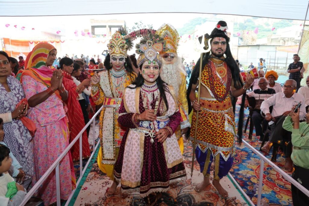 युवा संत ने कहा कि भगवान मथुरा से द्वारिका पधार गए, जो मोक्ष दायिनी सप्तपुरियों में से एक हैं। इस दौरान जरासंध से युद्ध के बीच मैदान छोड़कर जाने पर श्री कृष्ण रणछौर कहलाएं। जब द्वारिकाधीश ग्यारस वर्ष गोकुल और चौदह वर्ष मथुरा रहने के बाद पच्चीस वर्ष के हुए तो विवाह की तैयारियां होने लगी, तब विदर्भ राज की कन्या रूकमणी का विवाह शिशुपाल से करना तय हो गया था, लेकिन रूकमणी तो मन ही मन श्री कृष्ण को वर चुकी थी, तब उन्होंने संदेश वाहक के साथ अपने भाव प्रकट किए, तो द्वारकाधिश भी रूकमणी विवाह करने के लिए निकल पड़े। इस बीच शिशुपाल की 100 गलतियों के बाद उसका वध कर रूकमणी का अपहरण कर द्वारिका ले गए, जहां ठाठ बाठ से कृष्ण रूकमणी का विवाह हुआ। इस प्रसंग का विस्तार करते हुए जब युवा संत ने अपने ही अंदाम में बन्नो मारो द्वारिका नाथ बन्नी तो मारी रूकमण लाड़ली भजन की प्रस्तुति दी तो समूचा वातावरण वृद्धावन का विवाह मंडप बन गया, तभी कथा मंडप में भगवान श्री कृष्ण के बारात की झांकी व रूकमणी के विवाह का दृश्य हजारों दर्शकों के लिए आनंदित करने वाला हो गया। प्रारंभ में कास्ट परिवार एवं उनके मित्रों द्वारा व्यासपीठ की पूजा अर्चना कर आरती की ।