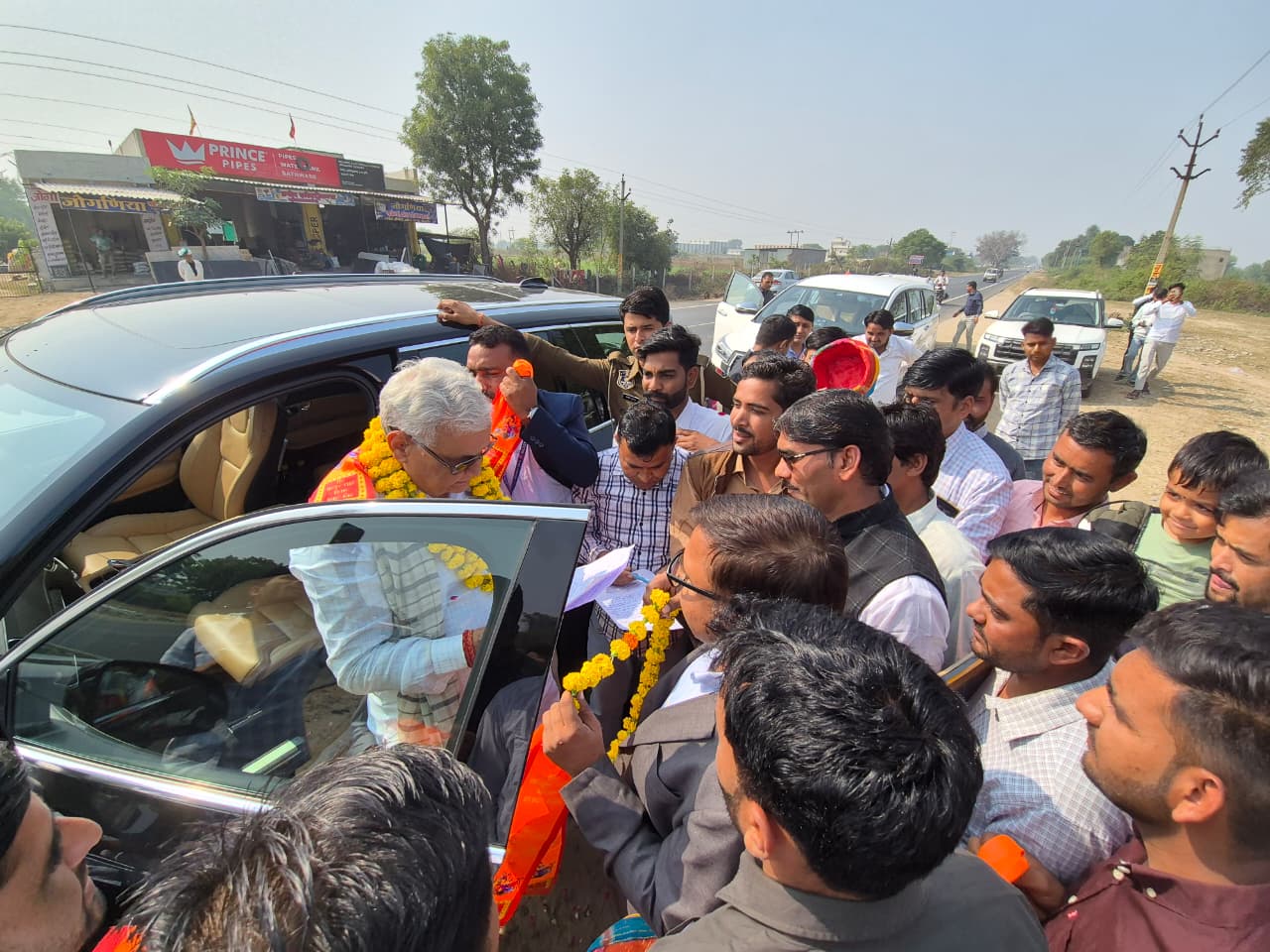 कृषि पर्यवेक्षक संयुक्त संघर्ष समिति भीलवाड़ा के जिला अध्यक्ष सुरेश कुमार मीणा(छाजेला का खेड़ा) के नेतृत्व में भीलवाड़ा जिले के समस्त कृषि विभाग के अधिकारियों एवं कर्मचारियों ने माननीय कैबिनेट मंत्री कृषि एवं उद्यान विभाग राजस्थान सरकार डॉ. किरोड़ी लाल मीणा का सवाईपुर मे भव्य स्वागत किया। कार्यक्रम में कर्मचारियों ने साफा-दुप्पटा और पुष्प वर्षा के साथ मंत्री जी का उत्साहपूर्वक अभिनंदन किया।