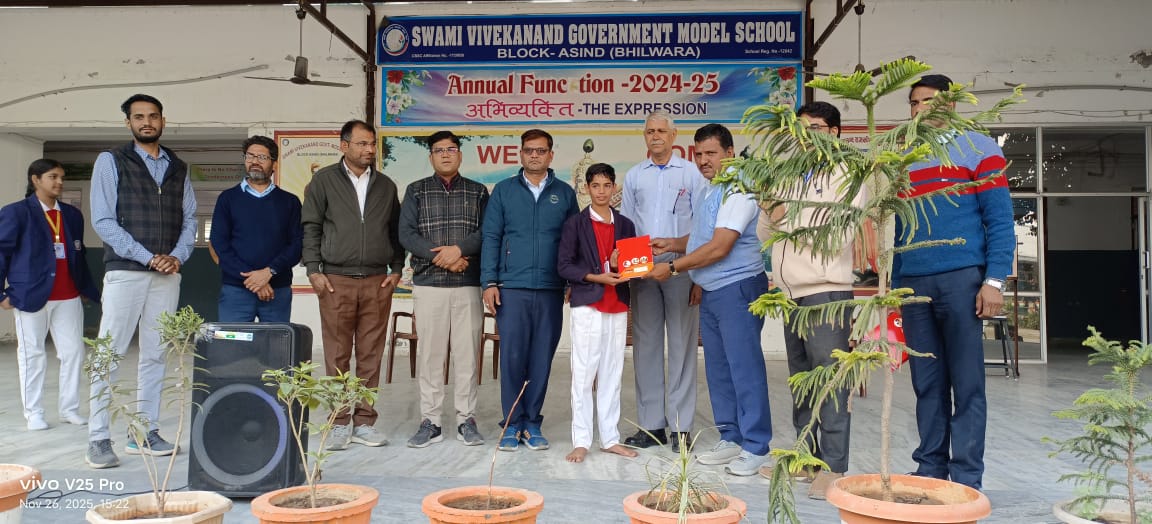 आसींद । उपखंड के स्वामी विवेकानंद राजकीय मॉडल स्कूल आसींद में आज भारत के संविधान का स्थापना दिवस का कार्यक्रम बड़े हर्षोल्लास के साथ आयोजित किया गया। मॉडल स्कूल आसींद के प्रधानाचार्य डॉ तुलसीराम कुमावत ने बताया कि राजस्थान सरकार के निर्देशानुसार विद्यालय में आज *हमारा संविधान स्थापना हमारा स्वाभिमान* थीम पर संविधान दिवस का कार्यक्रम में विद्यार्थियों के बीच निबंध लेखन, नाटक, कविता, स्लोगन इत्यादि की प्रतियोगिता आयोजित की गई। इस अवसर पर निबंध प्रतियोगिता में जूनियर वर्ग में अनीता साहू प्रथम, नीलम खटीक द्वितीय और ईश्वर कुमावत तृतीय रहे जबकि सीनियर वर्ग में वेदांशी शर्मा प्रथम, डिंपल शर्मा द्वितीय और जानवी शर्मा तृतीय रही। कविता पाठ में छात्र मोहित रेबारी ने संविधान की पृष्ठभूमि और आज की स्थिति पर एक शानदार कविता का पठन किया। महावीर कुमावत ने संविधान के मुख्य बिंदुओं पर प्रकाश डाला।