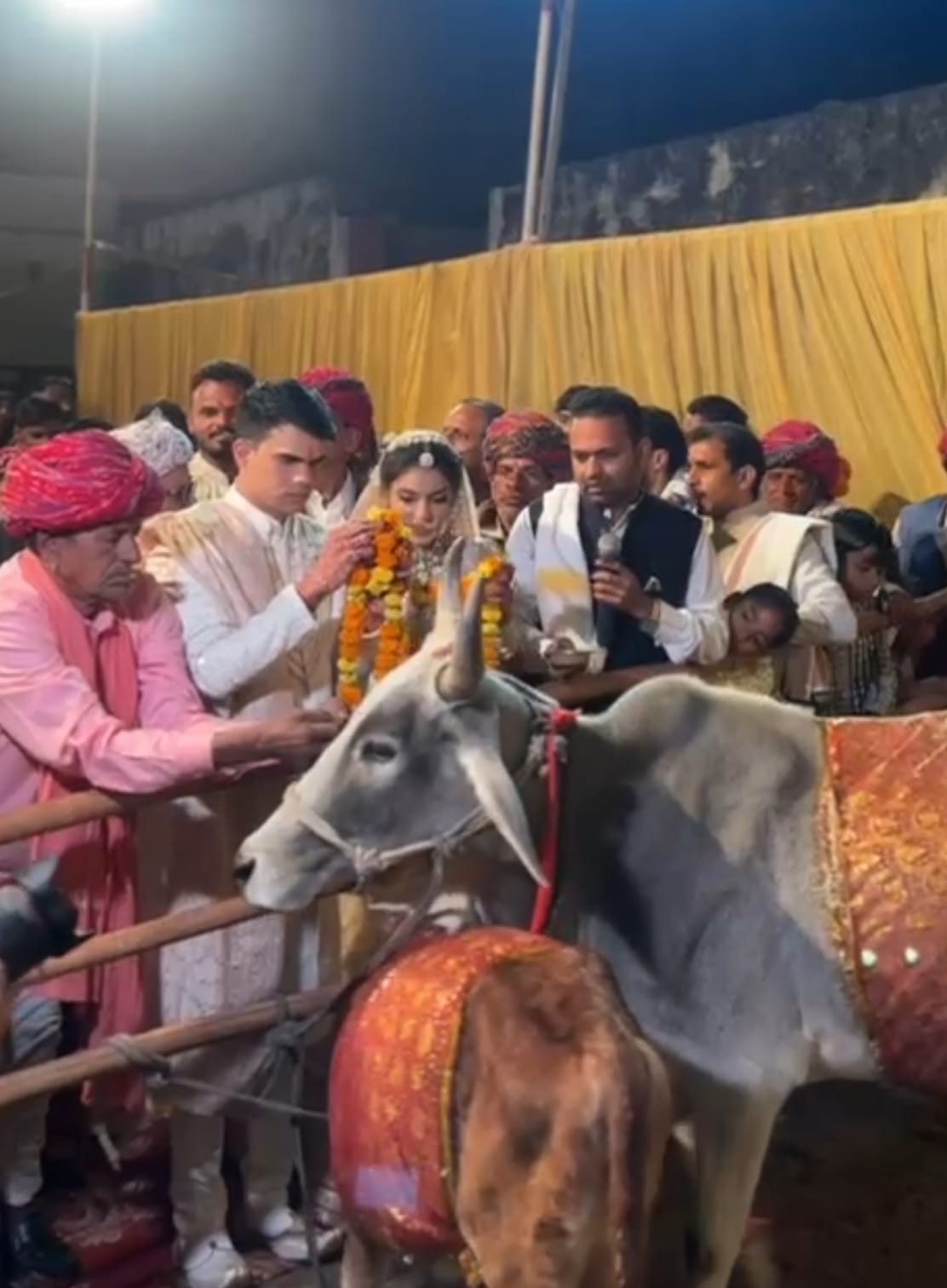 भीलवाड़ा। आधुनिक दौर में जहाँ शादियों में तड़क-भड़क और नए प्रयोगों की होड़ लगी है, वहीं शहर के माली समाज के रागशिया परिवार ने एक सादगीपूर्ण व सांस्कृतिक संस्कारों से जुड़े अनूठे आयोजन की मिसाल पेश की। मंगलवार को माली समाज के नोहरे में आयोजित सुपौत्र नंद लाल और मूली देवी के सुपौत्र तेजपाल रागशिया के विवाह समारोह में कई विशेष परंपराओं ने सभी का ध्यान खींचा। स्नेहभोज से पूर्व गौ माता का पूजन किया गया, जिसमें वर–वधू ने विधि-विधान से गौ पूजा की। इस अवसर पर महंत बनवारी शरण (काठिया बाबा) भी उपस्थित रहे। उन्होंने नवदंपत्ति को आशीर्वाद देते हुए गौ पूजन सम्पन्न कराया। पूजन का कार्य आचार्य धर्मेश व्यास व उनकी टीम द्वारा संपन्न हुआ। इसके पश्चात गौ माता को लापसी का भोग लगाया गया। समारोह की शुरुआत समाज सेवा की भावना के साथ हुई। तेजपाल रागशिया के विवाह अवसर पर 51 बालिकाओं को भोजन कराकर भोजन की औपचारिक शुरुआत की गई।