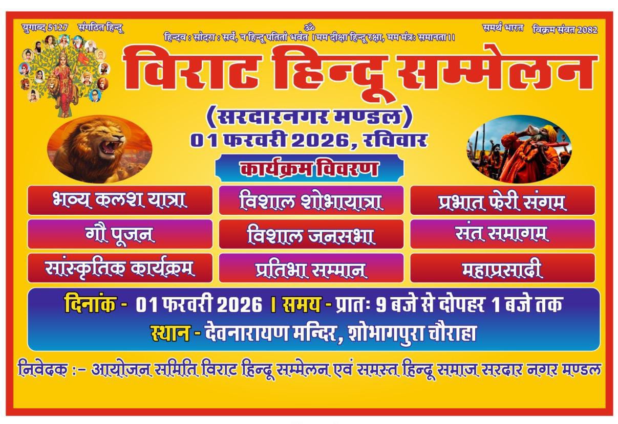 *सरदार नगर में 1 फरवरी को विशाल हिन्दू सम्मेलन का भव्य आयोजन* January 21, 2026KAPIL SHYAM VIJAY bhilwara Continue Reading